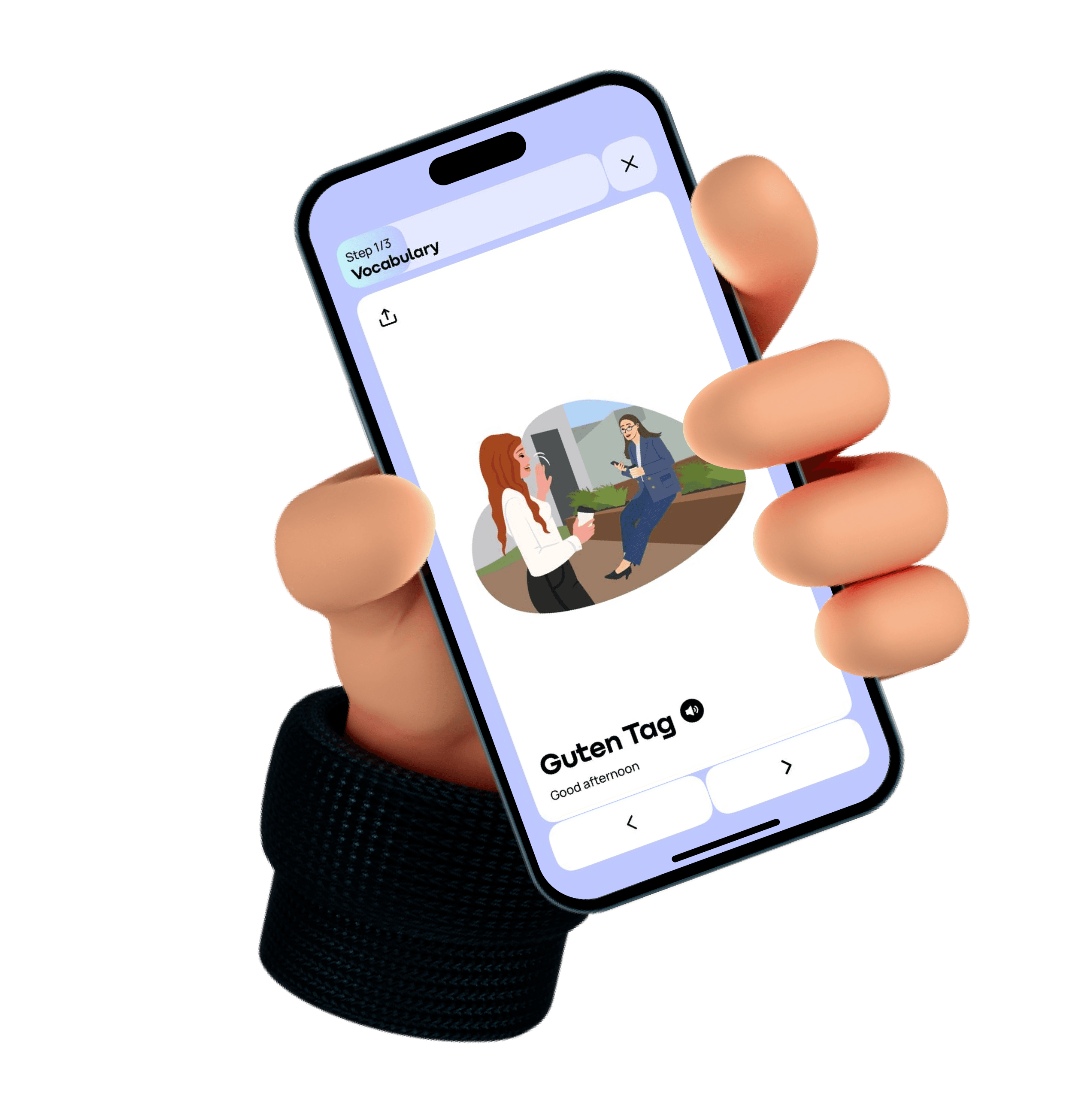 Learn German in real-life situations. Use interactive exercises and AI role-play to speak confidently, learn natural phrases, and discover German culture. Understand how language and traditions connect while having fun and improving your fluency step by step.