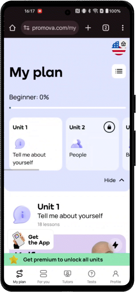 Jump straight into language learning without any effort. Add Promova to your Home Screen and enjoy all features and courses without downloading anything.