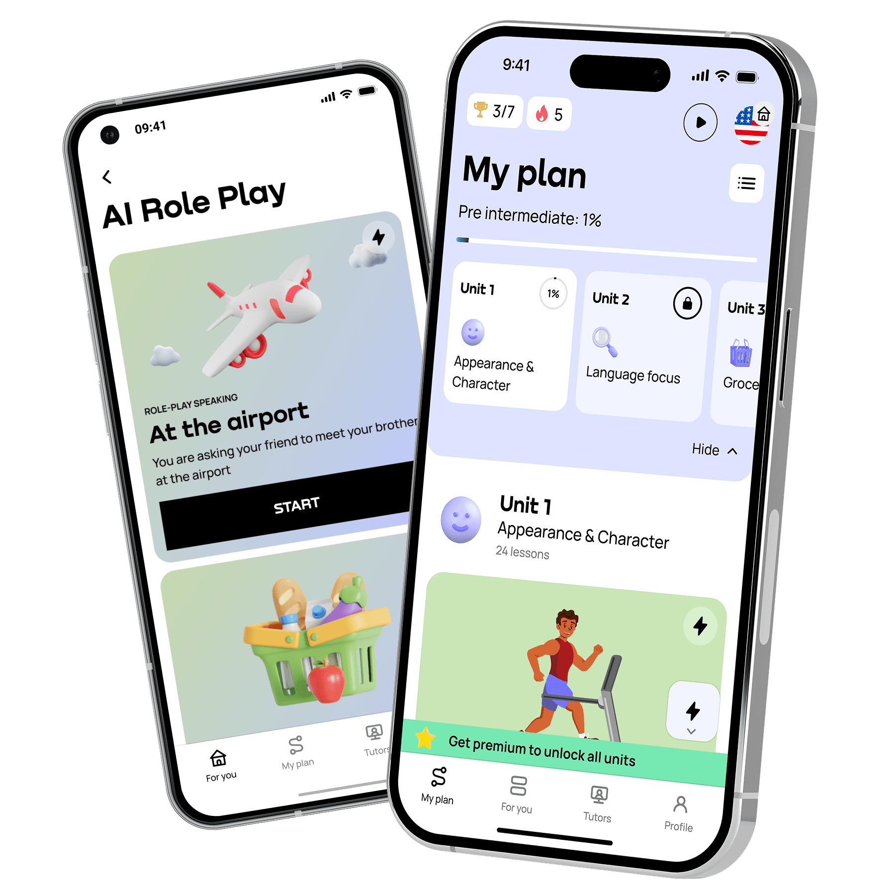 Choose the formats that work for you, whether that’s speaking with an AI tutor, following complete bite-sized lessons, or learning new words and phrases with English TV shows.